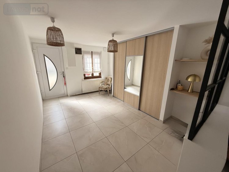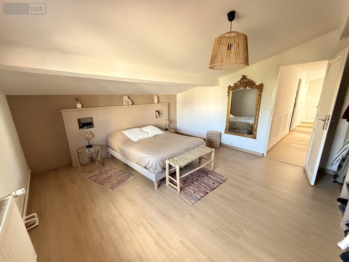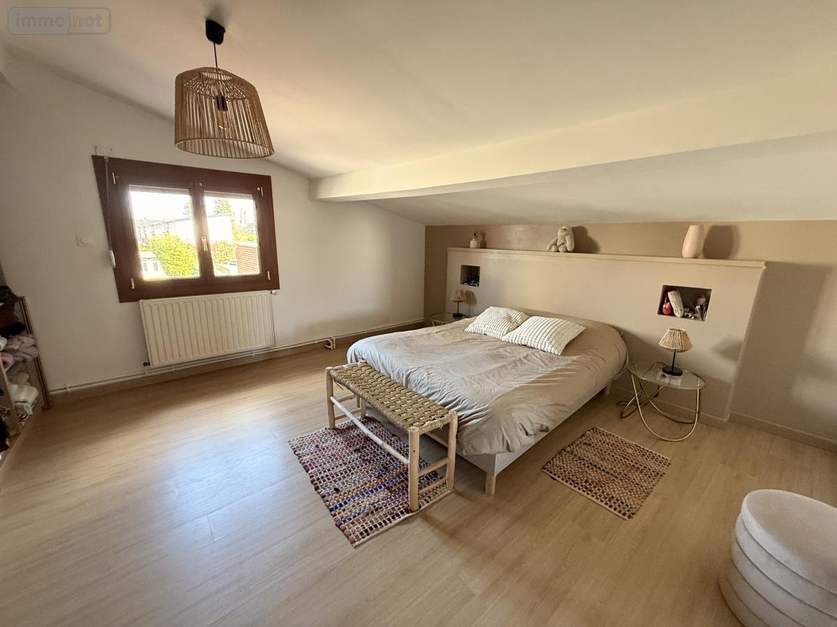 L'Office Notarial vous propose à la vente à proximité de la gare une maison mitoyenne d'environ 107 m² comprenant au rez de chaussée un hall d'entrée avec vestiaire, desservant un séjour d'environ 45 m² avec poêle à bois ouvert sur la cuisine aménagée et équipée, une salle d'eau avec douche italienne vasque et WC.
