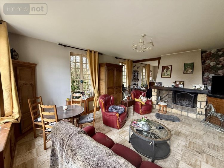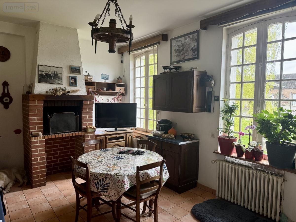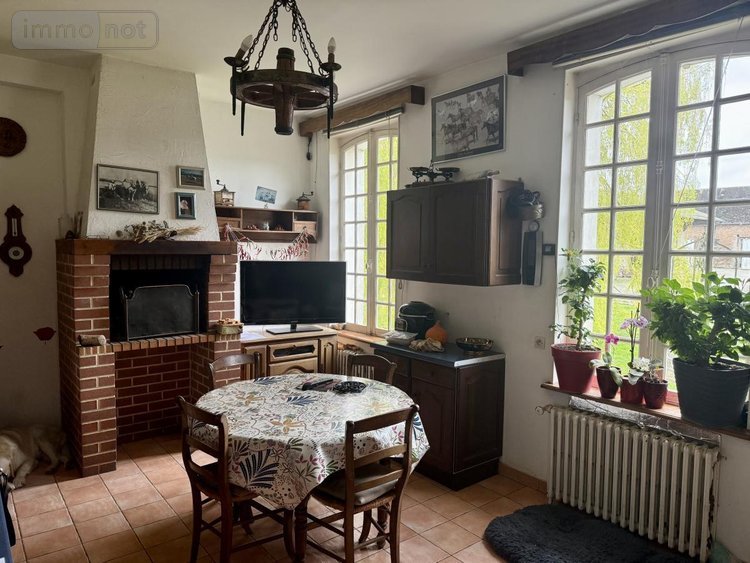 La maison se compose d'un hall d'entrée avec carreaux de ciment, d'une cuisine aménagée, un salon équipé d'une cheminée ouverte avec vue sur le parc, ainsi que d'une salle à manger avec cheminée.
