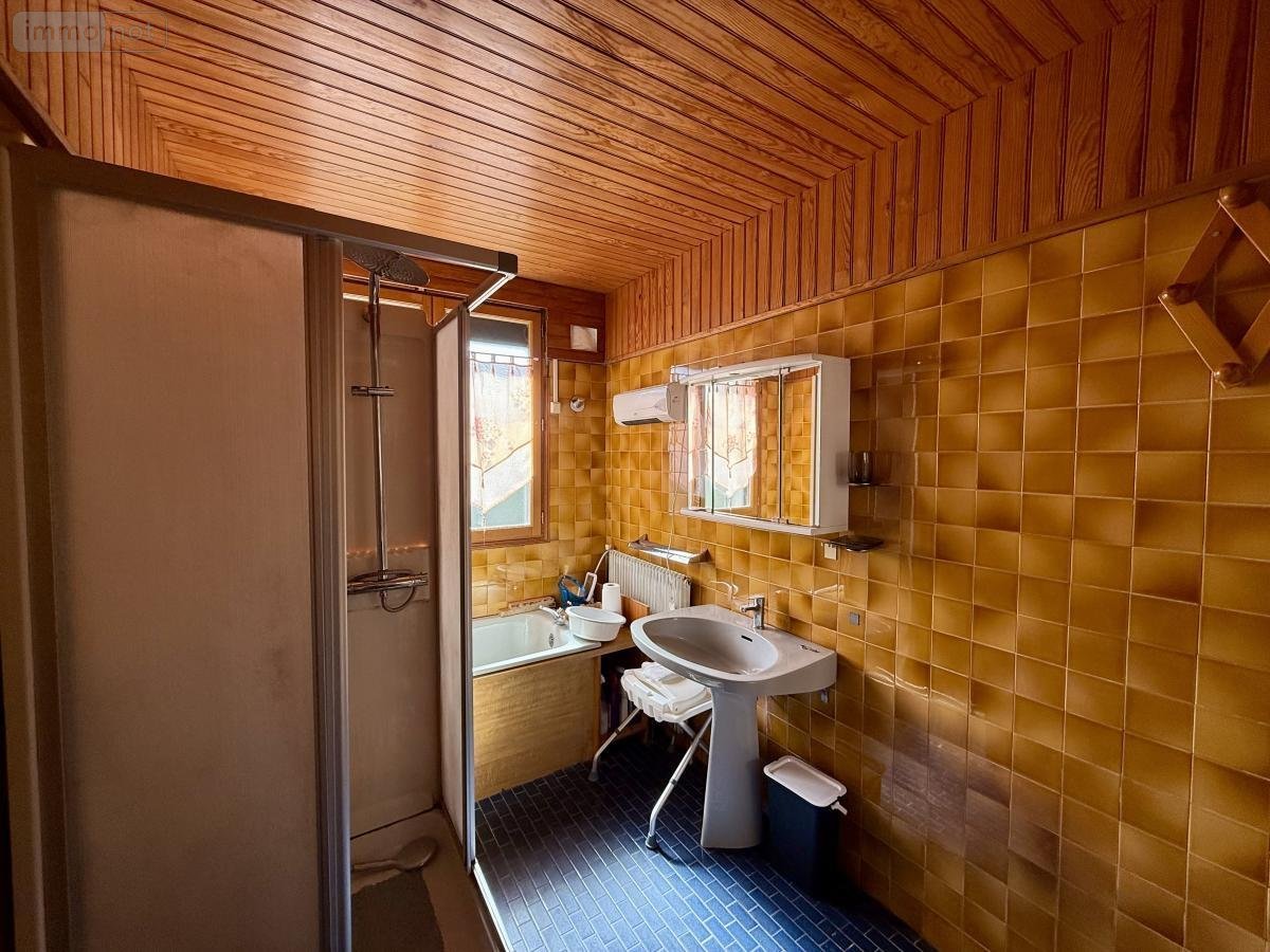 Au rez-de-chaussée, un hall d'entrée, wc, une cuisine aménagée, un couloir de dégagement, une salle de bains avec une baignoire, une vasque et une douche cabine. Dans le prolongement, deux chambres dont une avec un petit espace de rangement et pour compléter l'ensemble un salon/séjour équipée d'un insert bois et bénéficiant d'un balcon terrasse.