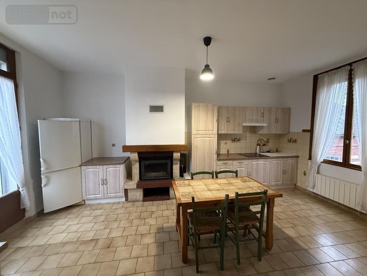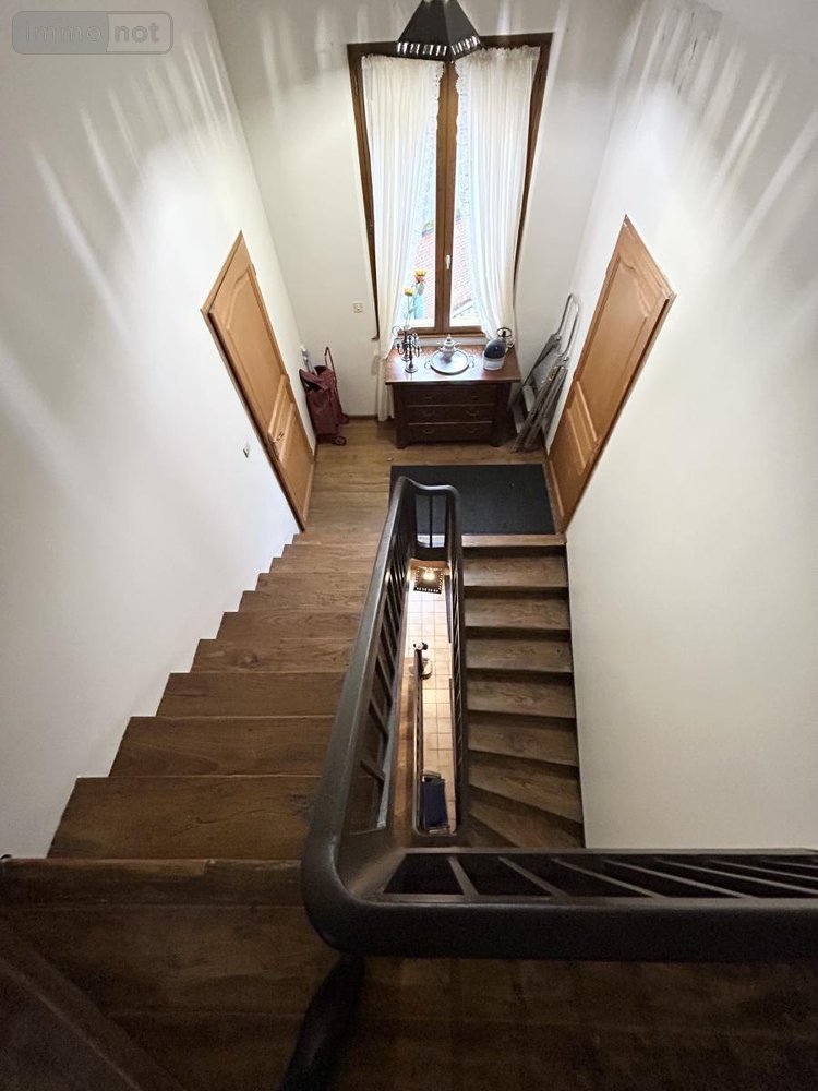 Au 1er étage, un palier, un wc, une salle d'eau avec une douche, un meuble vasque (VMC). Dans le prolongement, un couloir dessert une cuisine d'environ 19m2 équipée d'un insert bois en bénéficiant d'un balcon. La cuisine ouvre sur un ensemble salon/séjour lumineux d'environ 30m2.