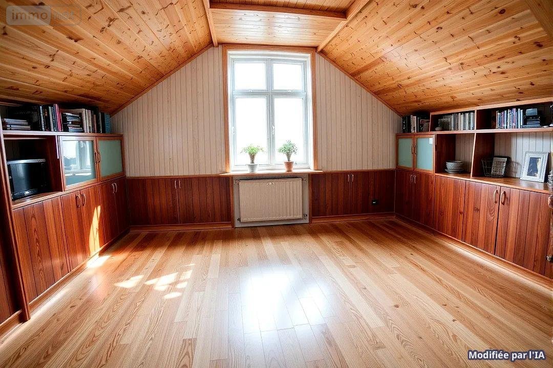 Étage : Palier desservant deux pièces mansardées et une salle d'eau.