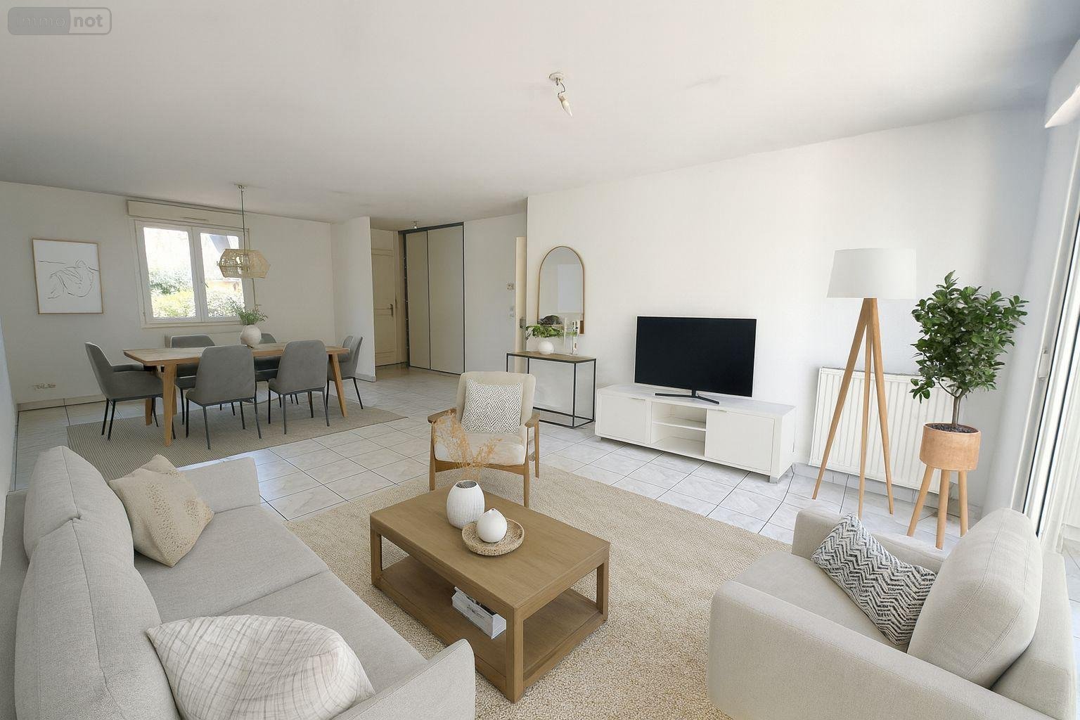 Plain-pied intégral : séjour lumineux, cuisine aménagée, 3 chambres, salle de bain avec douche et baignoire, WC indépendant