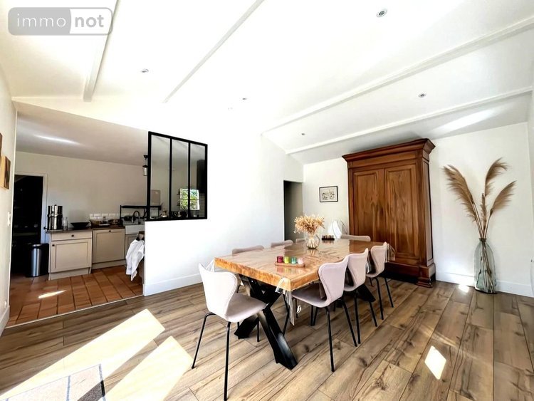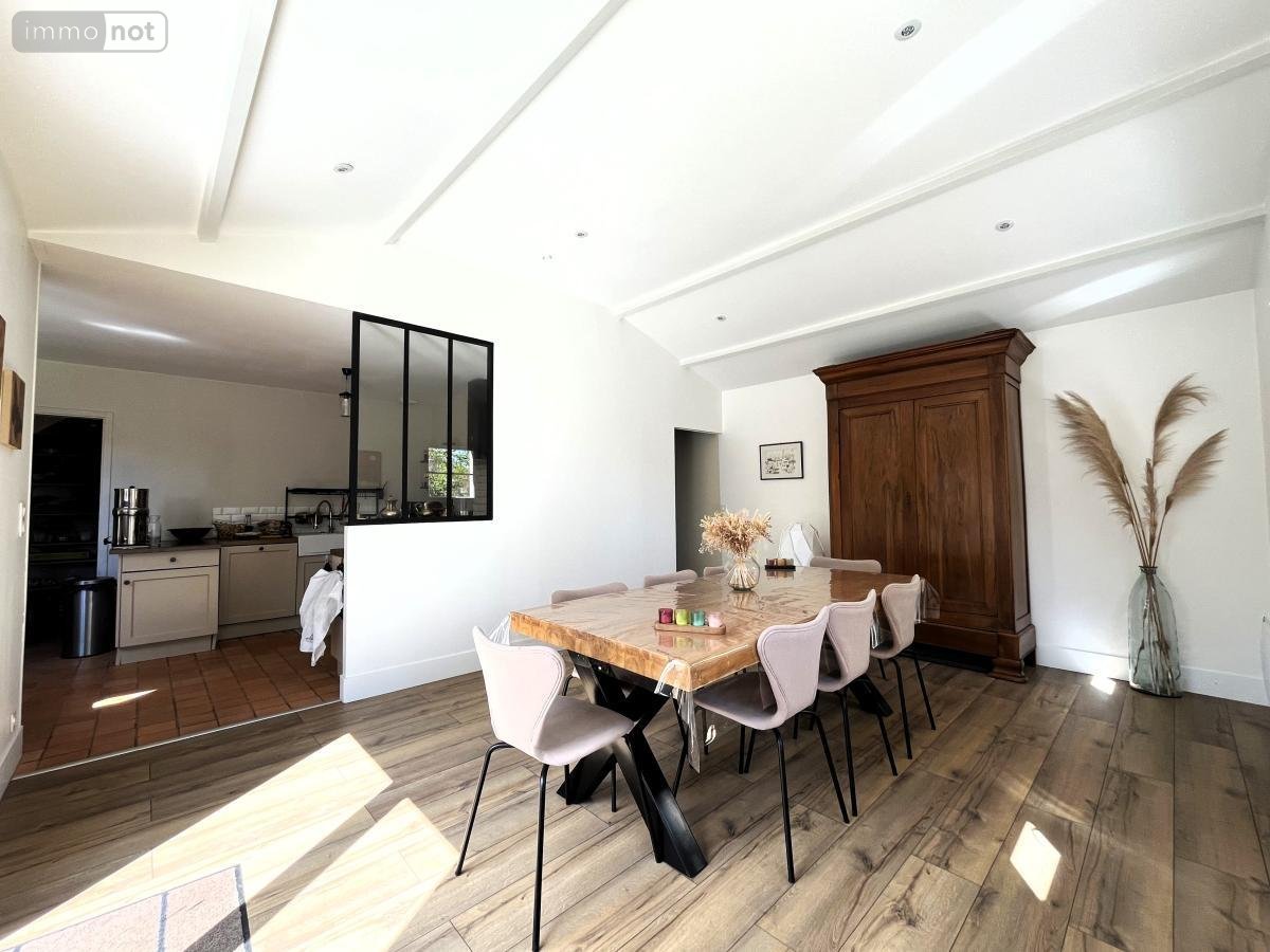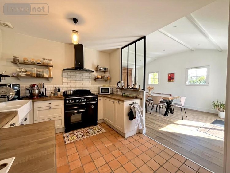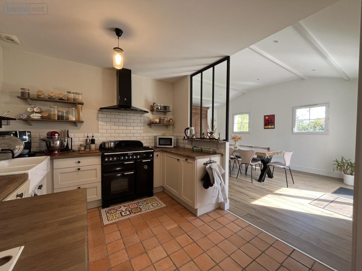 PORNIC, maison récente aux prestations soignées. Cuisine ae, salle à manger donnant sur une terrasse sans vis à vis bien exposée, salon cosy avec poêle, 4 chambres, bureau, sde, sdb, lingerie, garage. Beaucoup de charmes pour cette maison aux portes de Pornic.