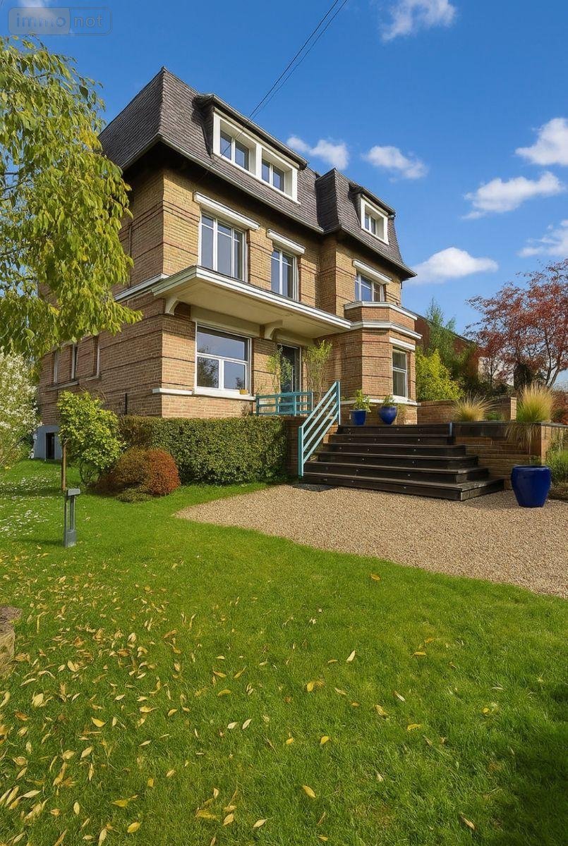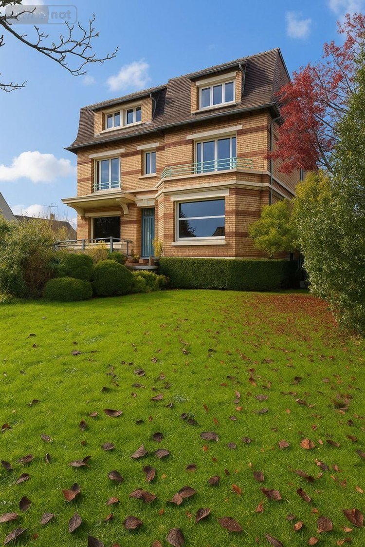 Maison individuelle en briques, présentant une architecture de caractère avec façade travaillée et toiture à la Mansart. Le rez-de-chaussée comprend une vaste entrée de 17m², une cuisine aménagée et équipée avec espace repas, un salon de 50m² avec parquet à chevrons, ainsi qu'un bureau indépendant.