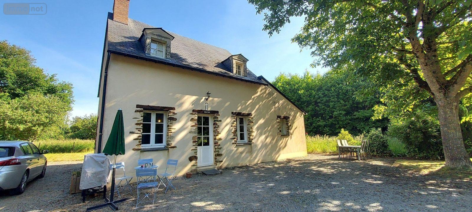 Sortie de CHATEAU GONTIER, belle maison de campagne offrant entrée sur pièce de vie avec poêle à bois, chambre, cuisine, toilettes. A l'étage palier desservant deux chambres, salle de bains avec toilettes.