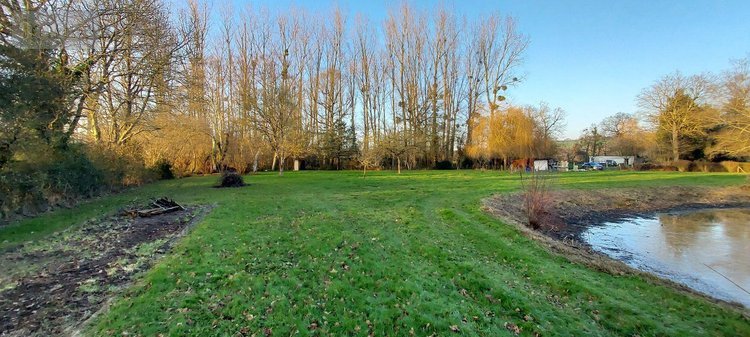 A la suite d'un chemin rural, vous accédez à une belle parcelle de terrain arboré agrémenté d'un plan d'eau d'environ 8000m² déclaré et conforme.