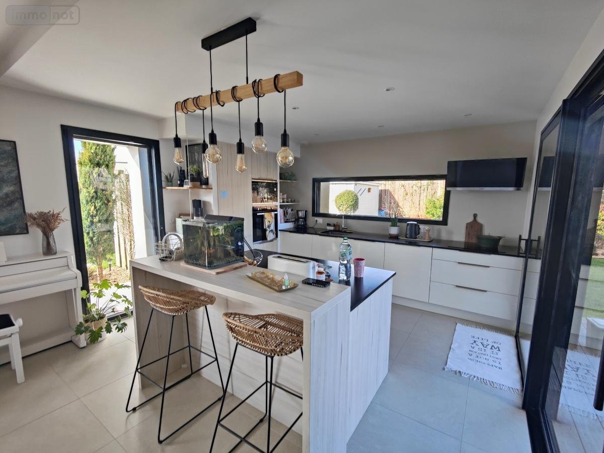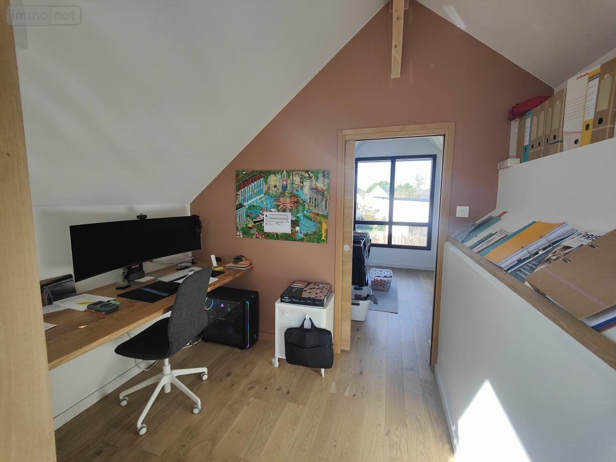 1,5 km de la plage de Pen Lan, superbe maison contemporaine au calme alliant prestations et confort. Séjour lumineux avec cuisine équipée, suite parentale en RDC, 4 chambres, bureau, bibliothèque. Garage, terrasse, abri.