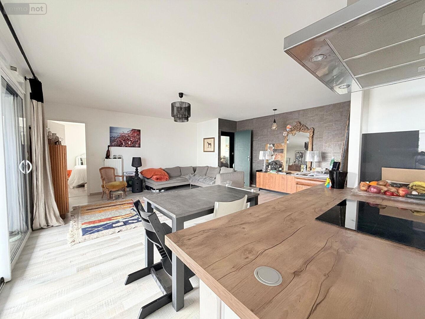 Entrée, salon-séjour avec cuisine ouverte, une arrière-cuisine, trois chambres avec placards dont une avec sa salle d'eau privative, WC et une salle de bains. Au sous-sol de la copropriété, un stationnement couvert et une cave.