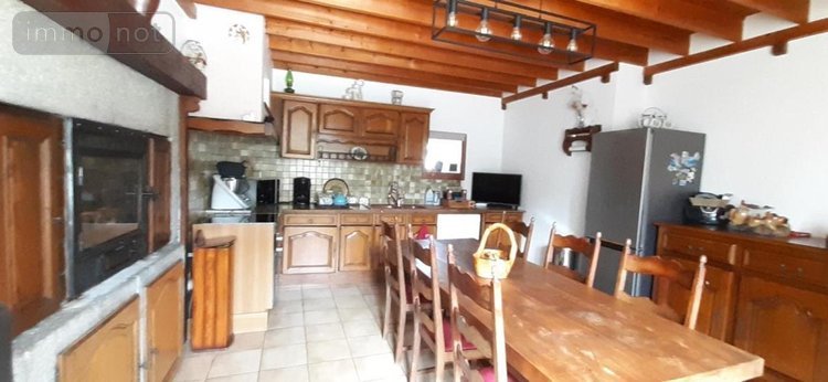 Maison en pierres avec extension à usage d'habitation d'environ 198m² comprenant : Au rez-de-chaussée : Entrée dans véranda, salle à manger salon avec cheminée à foyer ouvert, cuisine aménagée et équipée avec insert et poêle à granulés, WC indépendant avec lave-mains. A l'étage : Palier, dégagement, trois chambres, salle de bains et WC. Grenier au-dessus. Dans extension, cuisine d'été, couloir, buanderie, pièce, salle d'eau et WC, grande pièce carrelée avec accès direct au jardin. Pièce palière, deux chambres. Egalement inclus : Garage double, dépendances diverses, hangars, préau, poulailler, grande cour avec places de parking, portail motorisé, verger, jardin arboré, aménagé et clos.