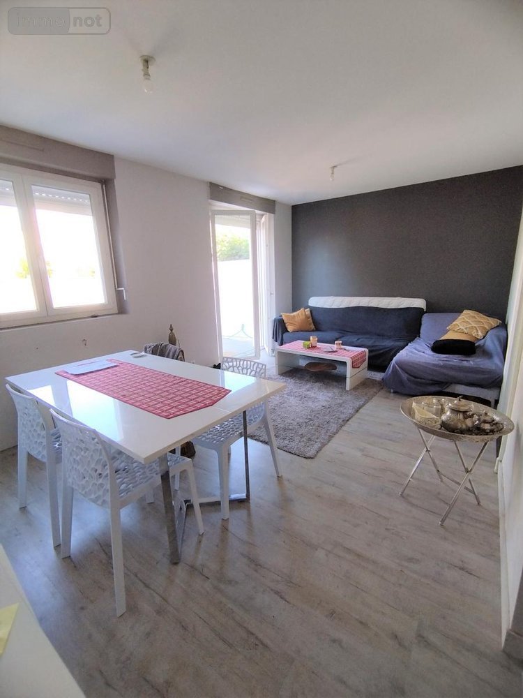 LORIENT, appartement au rez-de-chaussée d'environ 66 m² avec jardin comprenant : dégagement desservant trois chambres, W.C., salle d'eau, séjour avec coin cuisine, un placard sous escalier de la cage d'escalier.