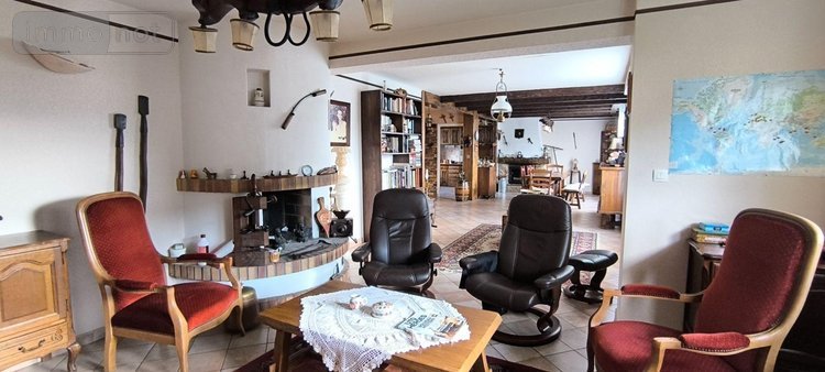 Au rez-de-chaussée, un hall d'entrée desservant le salon et séjour disposant chacun d'une cheminée, une cuisine aménagée spacieuse ouverte sur le séjour, une grande chambre avec salle d'eau privative (douche et baignoire), toilettes;