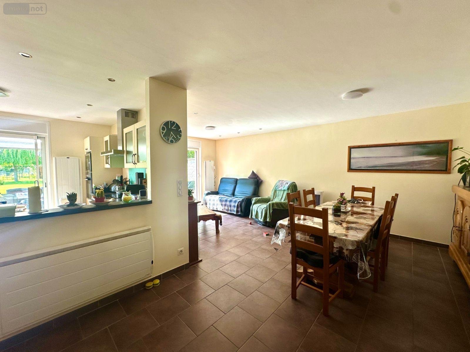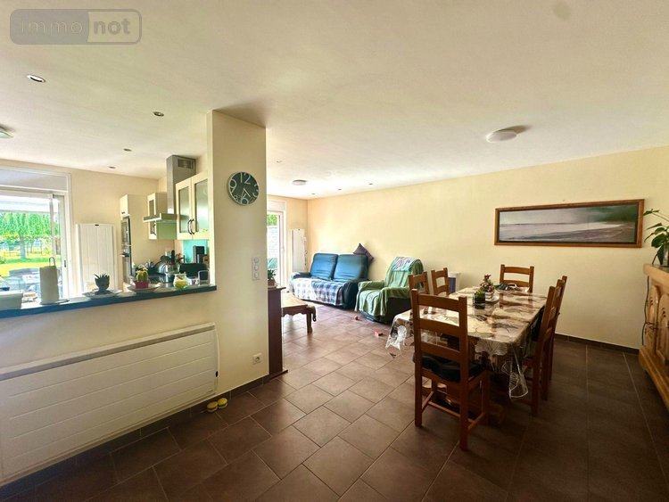 Le hall d'entrée distribue les pièces de vie qui se trouve à l'écart de l'espace nuit. De part et d'autre du couloir, deux chambres de 11 m² et 15 m². Le couloir dessert ensuite les pièces de vie, salon et séjour spacieux et lumineux, donnant une agréable vue sur le jardin via une large baie vitrée. La cuisine est ouverte sur les espaces de vie, créant une atmosphère conviviale et chaleureuse. On y trouve également une salle de bains ainsi qu'une buanderie, véritable plus !