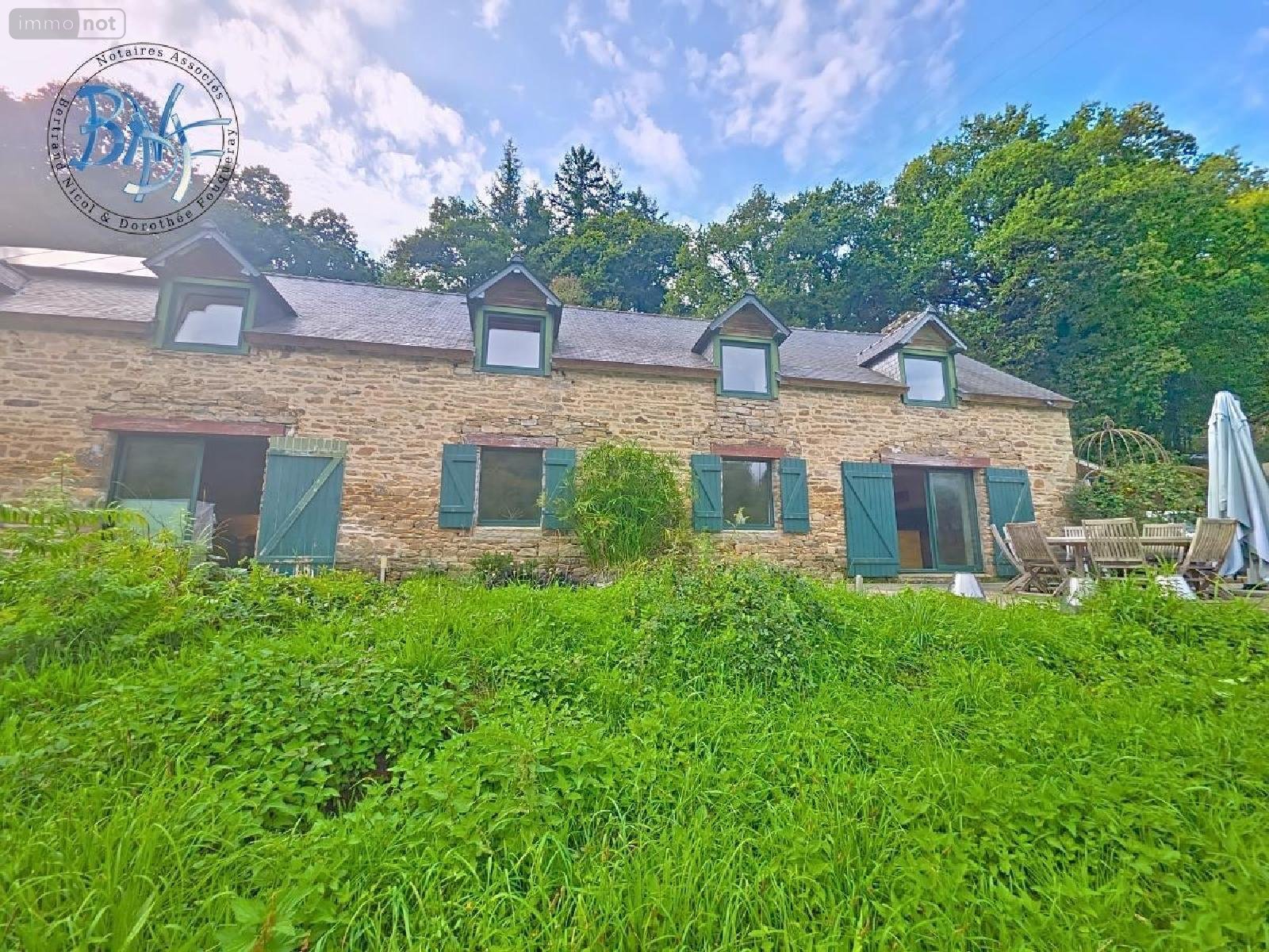Construite sur un terrain d'environ 7 000 m² au bord de la rivière, cette longère offre de beaux volumes et un cadre naturel privilégié.