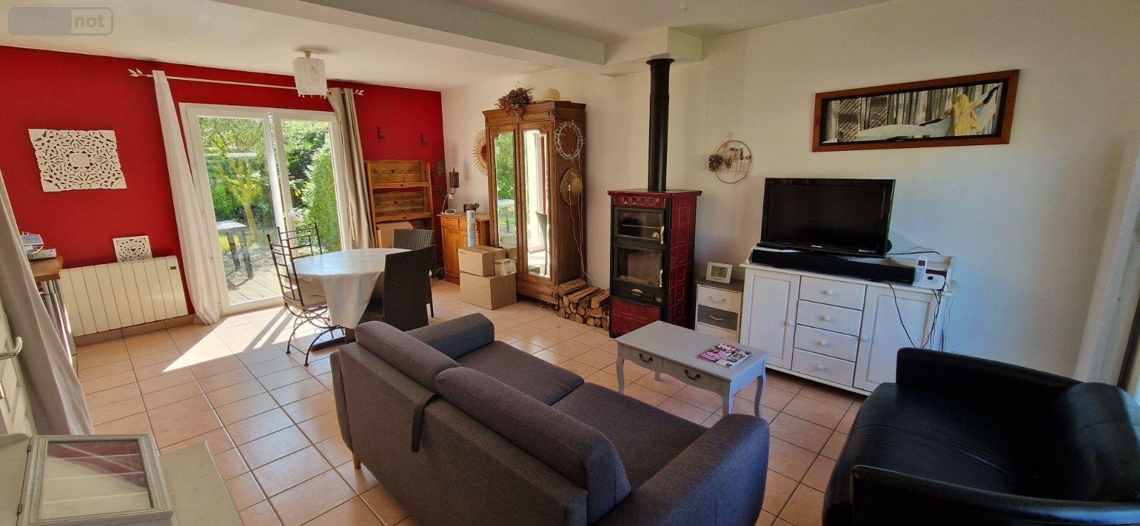 - au rez de chaussée : un séjour lumineux (sans le poele à bois), une cuisine ouverte aménagée et équipée, un garage attenant et communicant.