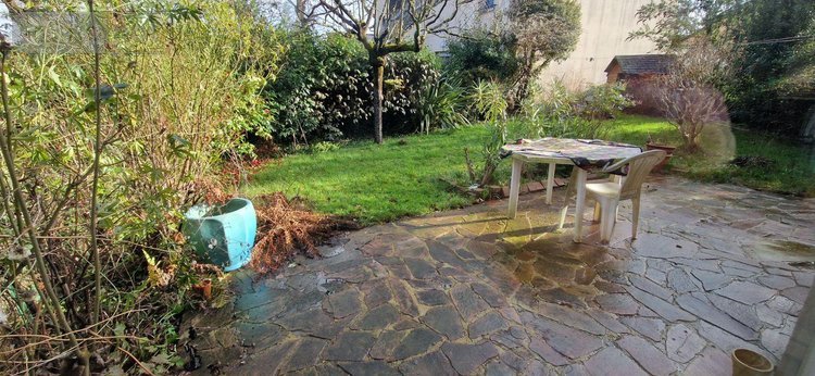 À l'extérieur, profitez d'une terrasse ensoleillée avec jardin, idéal pour les moments de détente ou jeux en plein air.