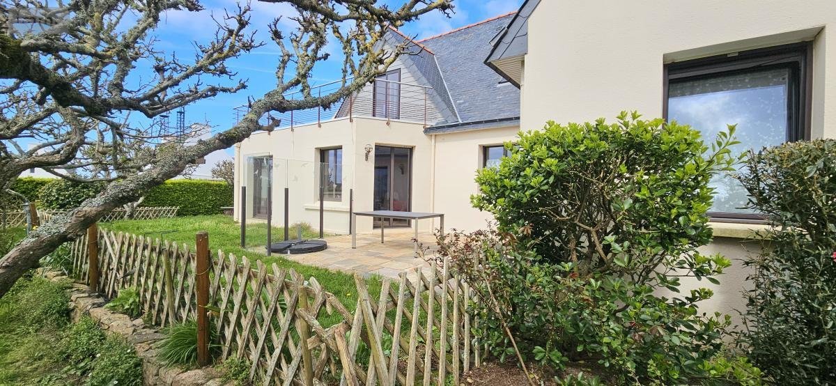 Maison de caractère avec vue mer, construite en 1954 et agrandie en 2006, offrant une agréable vie de plain-pied avec chambre et salle d'eau au rez-de-chaussée.