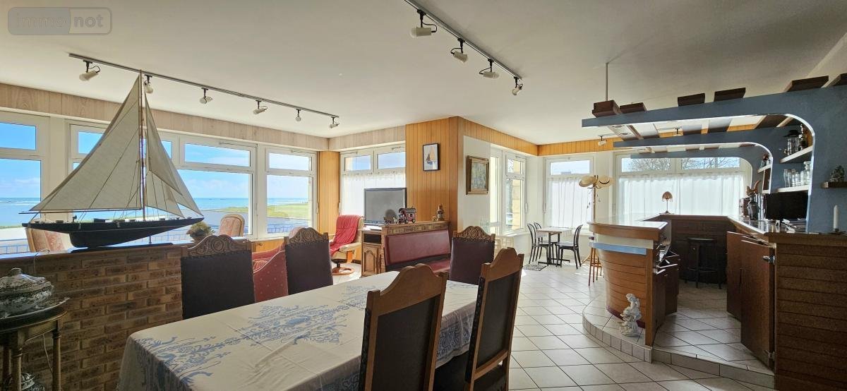 Le rez-de-chaussée propose une entrée, un vaste séjour/salle à manger de 56m², largement ouvert sur l'extérieur grâce à 7 grandes fenêtres et une porte vitrée tournées vers la mer, une cuisine indépendante de 16.5m², une chambre, ainsi qu'un espace douche avec WC et un autre WC séparé.