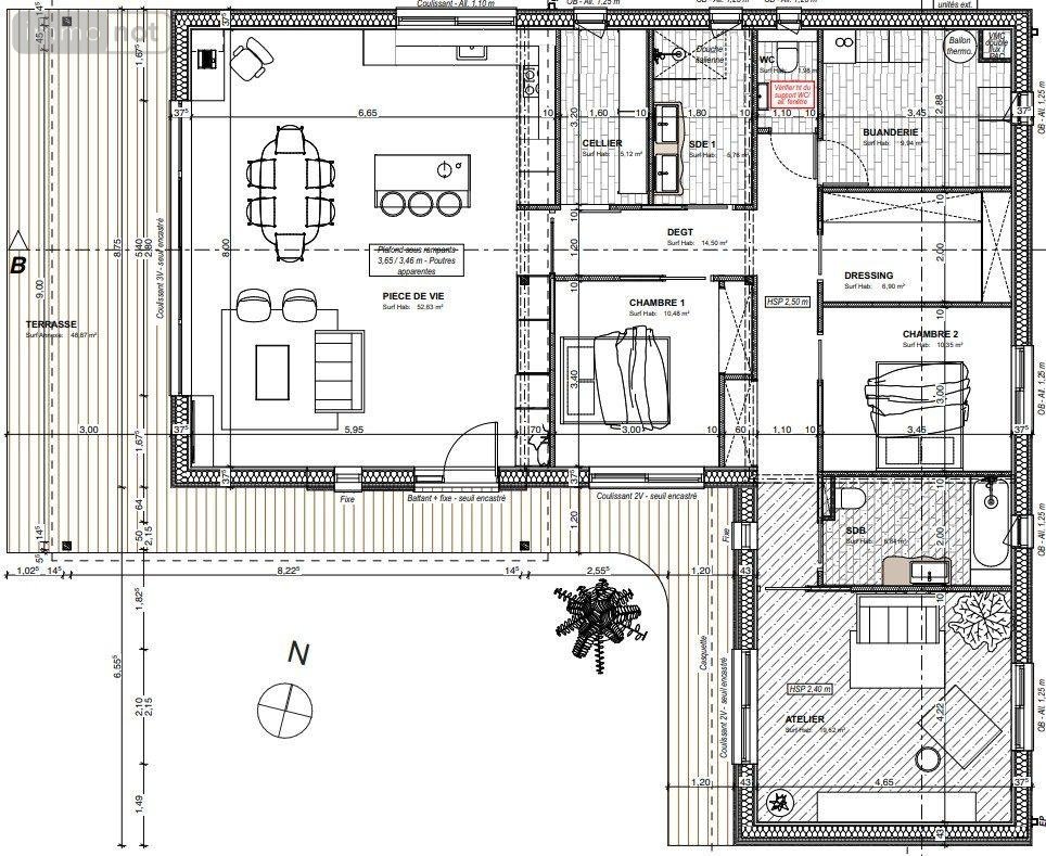 Un projet de maison de 145m² a été effectué avec plans et projection visuelle.