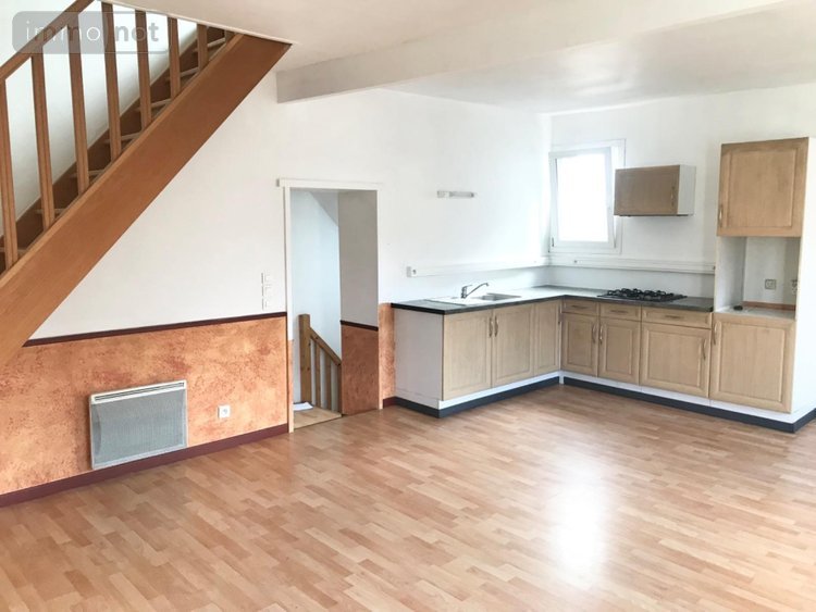 Un appartement comprenant : au rez-de-chaussée : entrée, salle de douches et wc, au premier étage : pièce de vie avec coin cuisine, wc et chambre, au deuxième étage : une grande chambre.