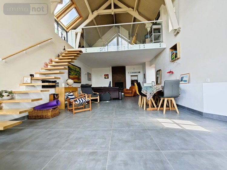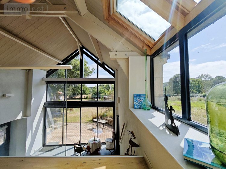 Le charme opère dès que l'on franchit la porte avec une entrée laissant apparaître la pierre d'origine, desservant une cuisine chaleureuse avec son puits de lumière, dans la continuité un grand salon séjour de 43 m² environ avec mezzanine pour des moments conviviaux entre cheminée et luminosité avec une magnifique verrière ouverture à trois vantaux sur la terrasse exposée SUD.