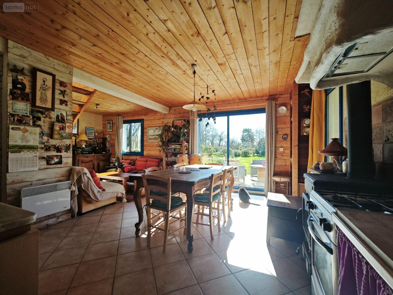 C'est une maison conviviale et familiale avec une construction en accord à son environnement, mode de chauffage électrique avec panneaux solaires et poêle à bois.