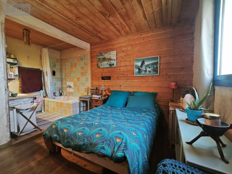 Côté vie intérieur, au-rez-de-chaussée vous entrez dans un sas/cellier avec une pièce bureau actuellement, un WC séparé, une chambre avec sa salle de bains double vasque, puis la pièce de vie ouverte avec coin cuisine lumineuse et chauffée avec son poêle à bois donnant sur la terrasse exposée SUD-OUEST.