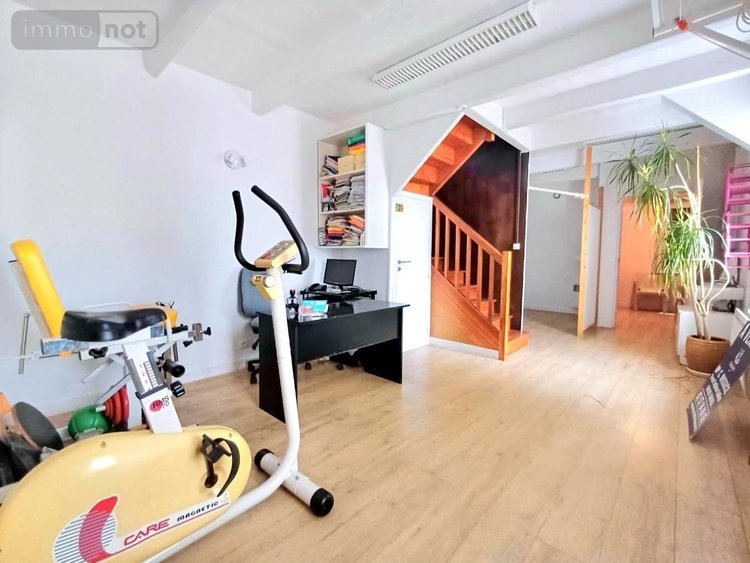 A l'étage: deux pièces dont une avec un coin cuisine, une salle d'eau avec wc.