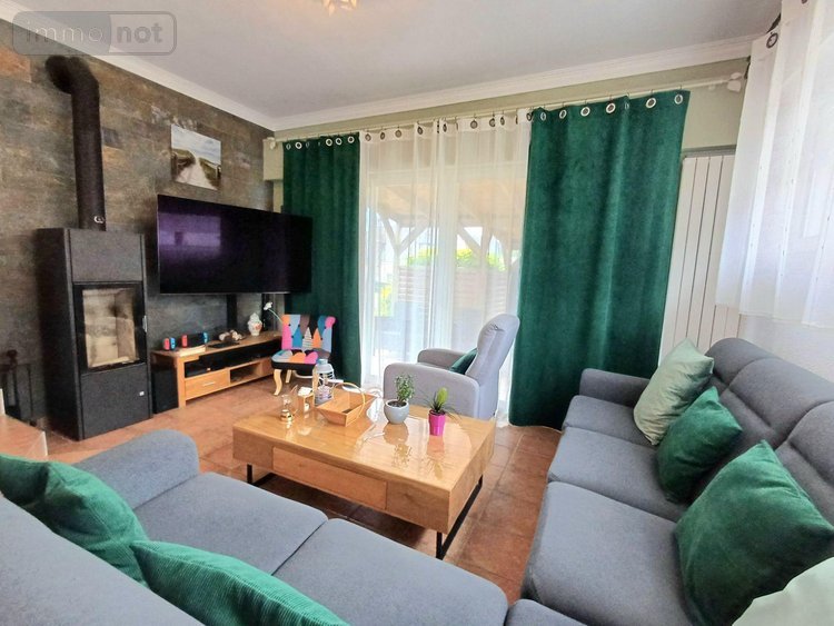 Au rez-de-chaussée: salon séjour avec poêle à bois, cuisine aménagée et équipée, une chambre, un wc.