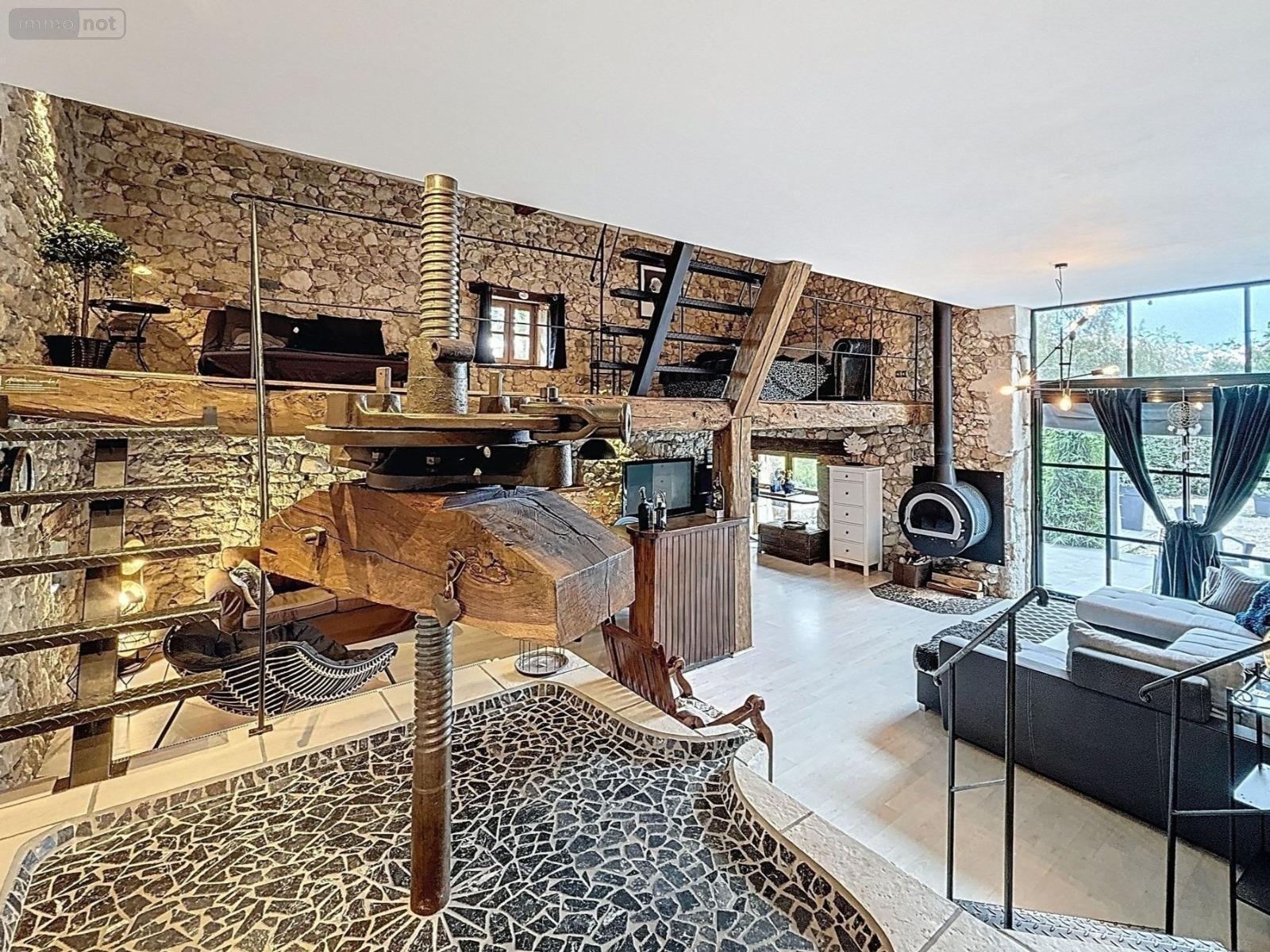 Cette ancienne ferme rénovée compte entre autre, trois salons, deux cuisines, une salle d'eau, une salle de bain, quatre chambres, une mezzanine, un bureau, une buanderie ...Le spacieux séjour de 52 m² ouvert sur la terrasse par une grande baie vitrée offre une surface de 52 m².