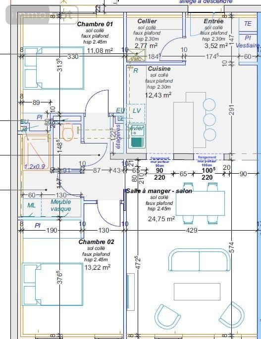 Angers , Strasbourg, T3 livré brut ou aménagé