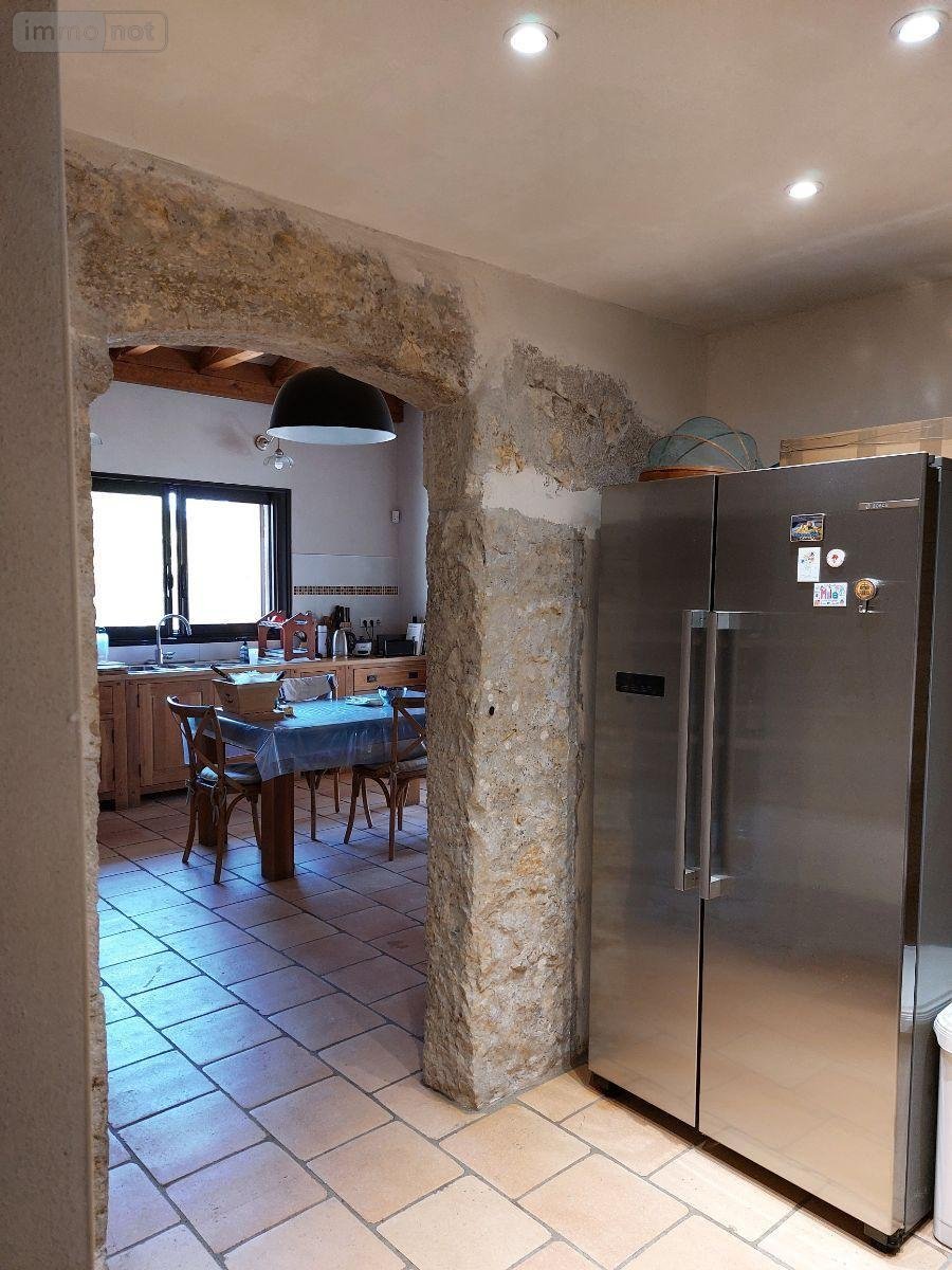 La maison principale, entièrement refaite à neuf avec des matériaux haut de gamme, dans le style de l'ancien, mais avec tout le confort moderne, se compose d'une grande cuisine équipée donnant sur une terrasse couverte, d'un séjour de plus de 40m², d'un cellier, d'une buanderie et d'une salle d'eau au rez de chaussée. Une vaste chambre avec salle de bain ouverte occupe tout l'étage.