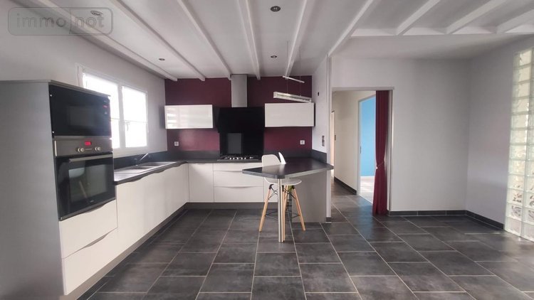 Entrée, cuisine meublée et équipée récente ouverte sur la salle à manger ( pièce de vie d'env. 40 m² ) , salon de 27.50 m² avec poêle à granulés et bureau en mezzanine, dégagement , trois chambres, salle d'eau moderne, grande pièce buanderie/dressing , wc.