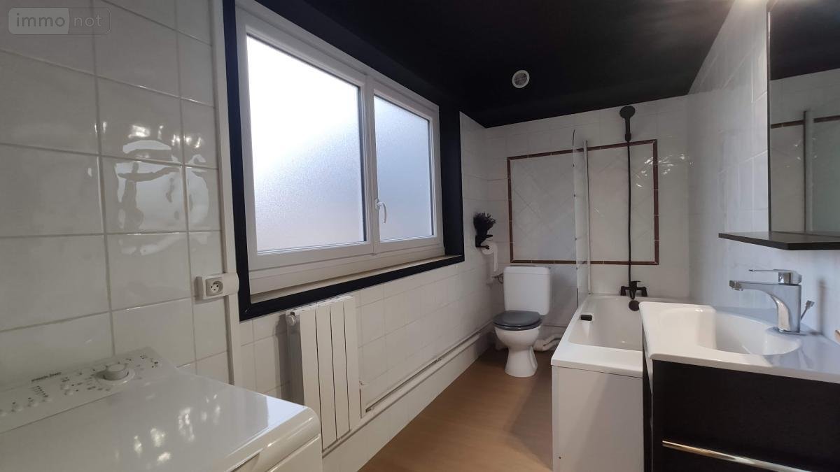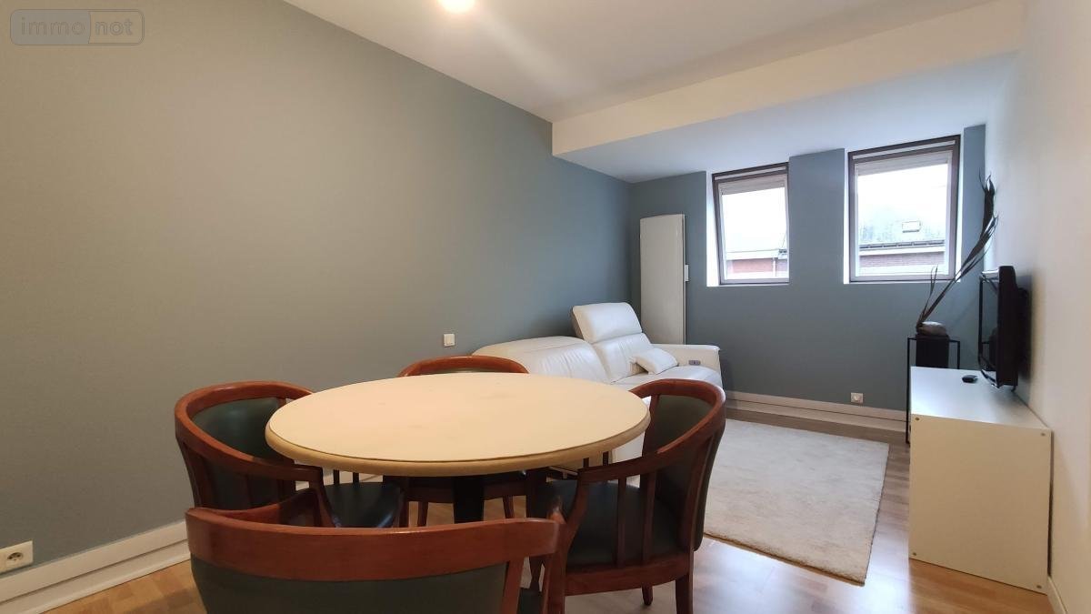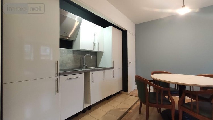 Entrée avec placard, cuisine meublée et équipée ouverte sur le séjour, chambre, salle de bains avec wc.