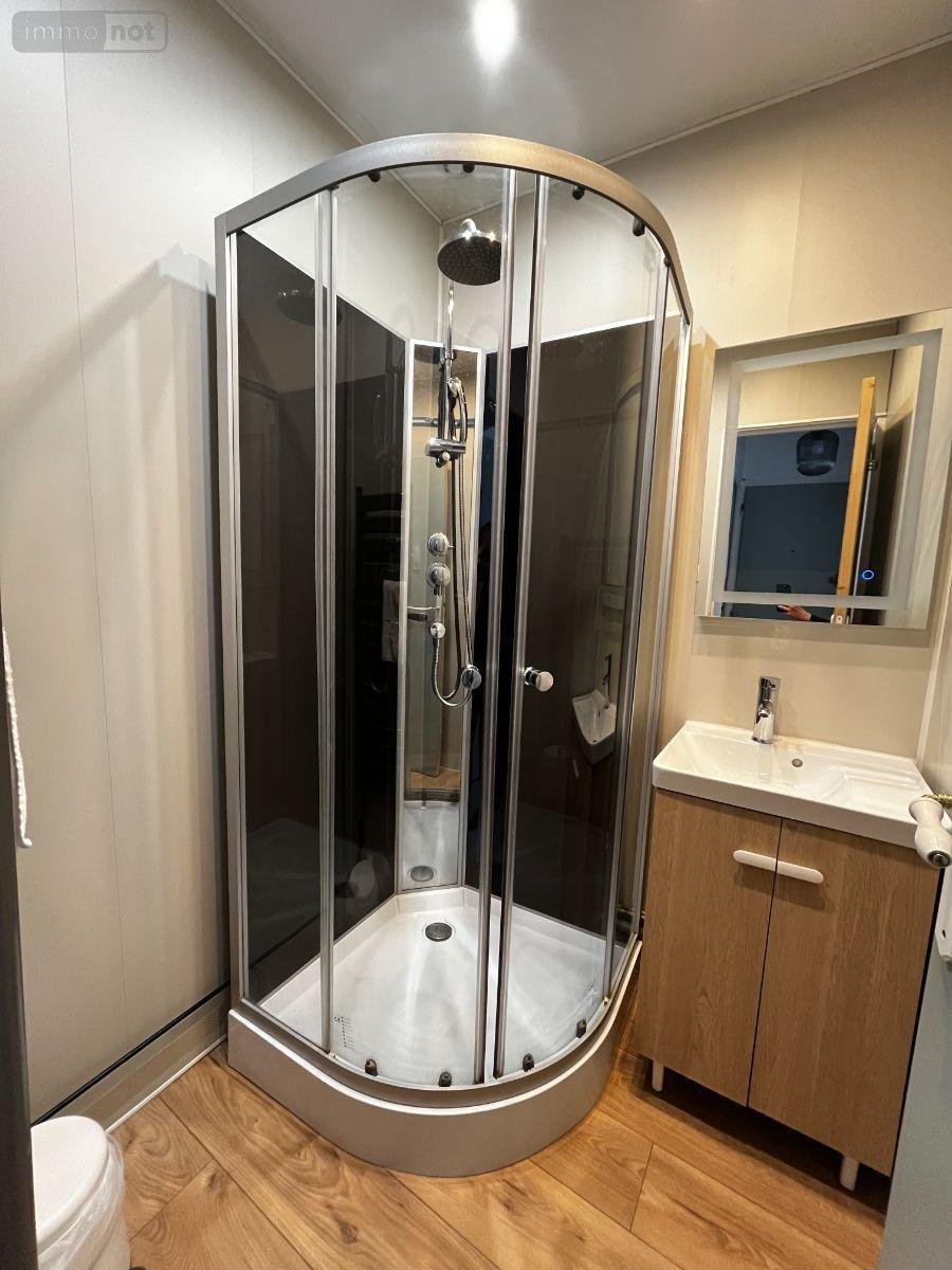 Pièce de vie, cuisine aménagée et équipée, sanitaires.