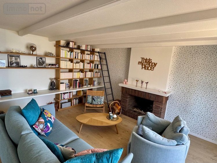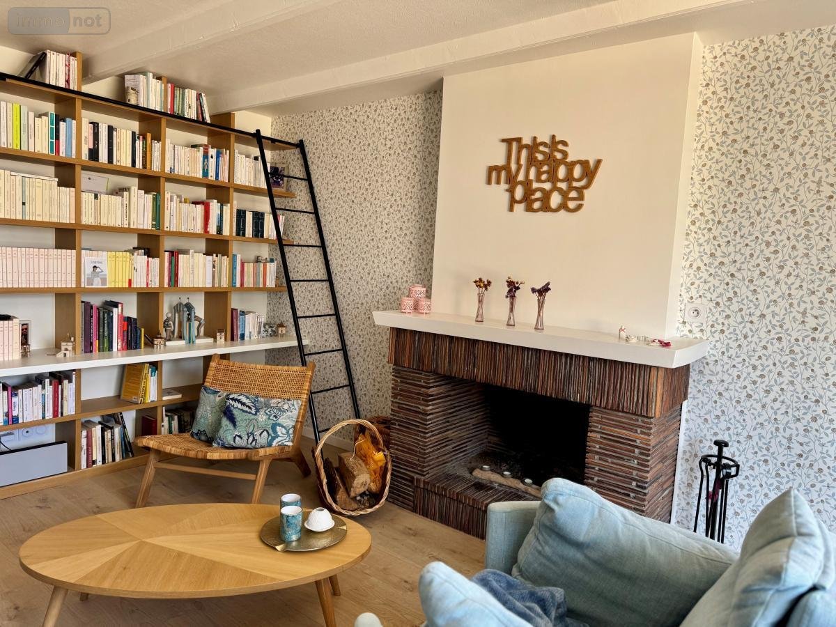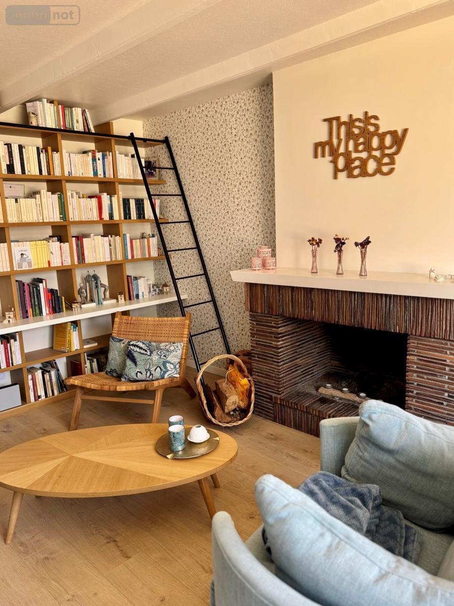 Vous apprécierez l'atmosphère chaleureuse du séjour avec sa cheminée et sa bibliothèque sur mesure.