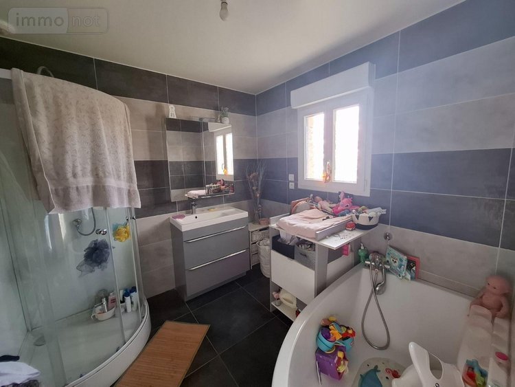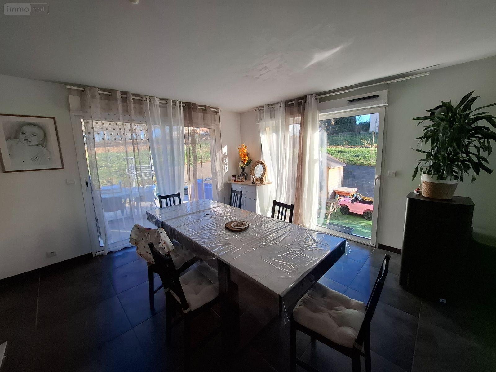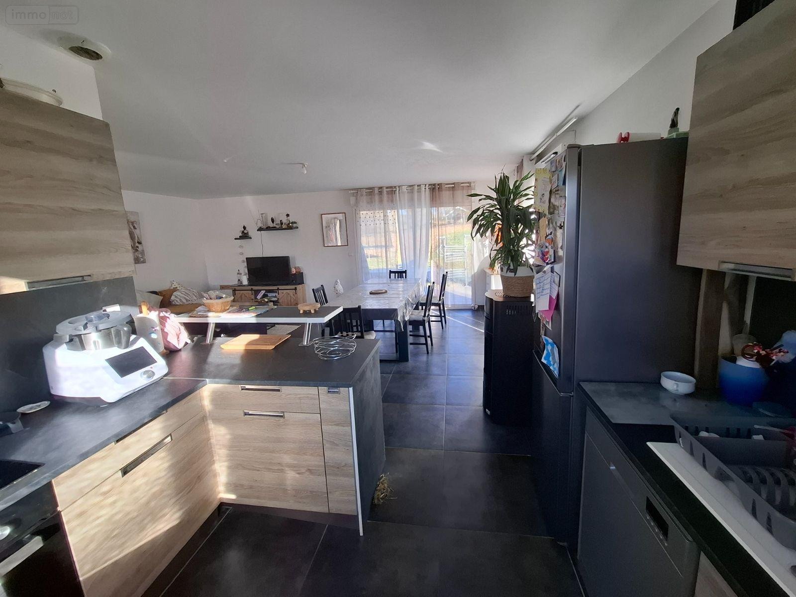 Maître Benoît Meuret-Cadart, notaire au Bugue a le plaisir de vous présenter une maison d'habitation contemporaine de plain-pied construite en 2019, développant une surface habitable de 90 m² et idéalement située à proximité immédiate des sites touristiques et des rives de la Dordogne. Cette réalisation de qualité s'ouvre sur une pièce de vie lumineuse et chaleureuse, comprenant un salon-séjour spacieux agrémenté d'un poêle à granulés performant et une cuisine ouverte entièrement équipée et fonctionnelle, le tout baigné de lumière naturelle grâce à de larges baies vitrées. La partie nuit se compose de trois chambres confortables, d'une salle de bain complète avec douche et baignoire, ainsi que d'un WC indépendant et d'une buanderie pratique. Répondant aux normes environnementales RT2012, la bâtisse dispose d'un système de chauffage mixte par radiateurs électriques et poêle à granulés, ainsi que d'un assainissement individuel aux normes en vigueur. L'ensemble est implanté sur une parcelle d'environ 1 800 m² piscinable, agrémentée d'une belle terrasse à l'arrière pour vos moments de détente. Ce bien, en parfait état général, ne nécessite aucuns travaux et affiche une taxe foncière de 750 €.