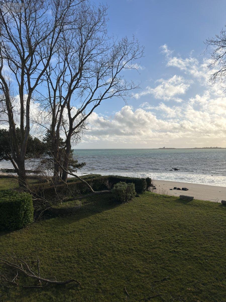 En première ligne face à la mer, au sein d'une maison de maître implantée sur un terrain arboré l'entourant et en retrait de la route, cet appartement de 170 m², exposé sud, bénéficie d'une vue directe et dégagée sur l'Île de Tatihou ainsi que d'un accès immédiat et privatif à la plage, dans le secteur recherché de Jonville à Réville.