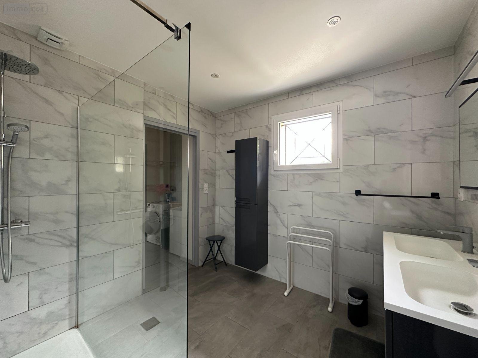 A vendre Bonnetan maison de plain pied en trés bon état général d'une surface habitable d'environ 115 m² avec garage attenant de 41m² comprenant une entrée , un salon séjour avec cheminée insert et cuisine ouverte aménagée de 56m², 3 chambres avec placards, cellier, salle d'eau neuve, WC