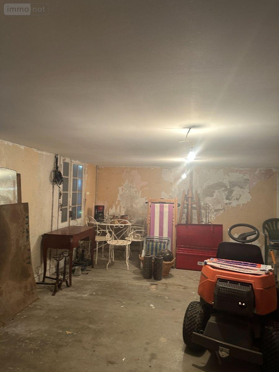 La maison se compose en rez de chaussée d'un garage de 35m², d'un point d'eau, d'une buanderie, d'une pièce de 26m² et d'une cave.