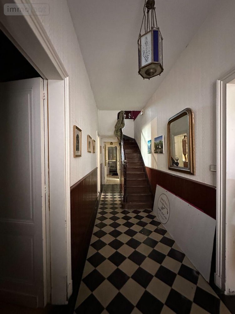 A l'étage : une salle d'eau, deux chambres de 17.6m², une de 16.8m² et une de 16.3m² (toutes avec cheminée), une pièce de 13.7m² à réhabiliter.