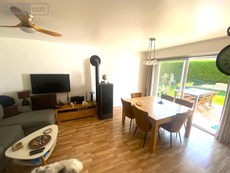 En centre bourg, profitez d'un cadre de vie privilégié avec cet appartement de plain-pied offrant 63 m² parfaitement agencés. Dès l'entrée, un hall doté d'un placard intégré distribue une belle pièce de vie lumineuse avec poêle à granulé, une cuisine aménagée et entièrement équipée, ouverte sur une spacieuse terrasse prolongée par un jardin arboré exposé Ouest.