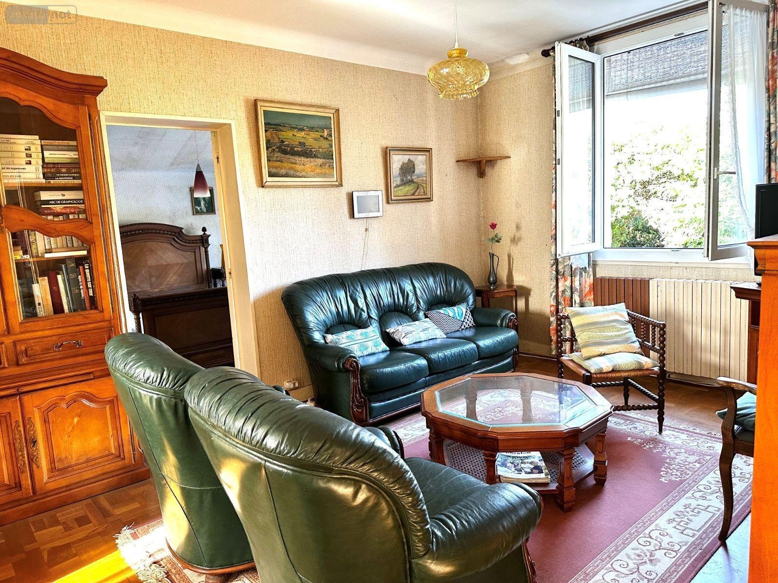 Élevée sur deux niveaux, cette maison est composée à l'étage d'une entrée, un salon, une salle à manger avec cheminée, 3 chambres, une salle de bain et un WC indépendant,