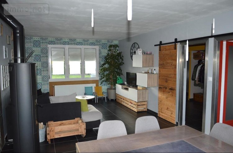 Rdc : entrée 10 m2, salon séjour 30 m2 avec poêle à bois, cuisine aménagée équipée 10 m2, rangement et wc.