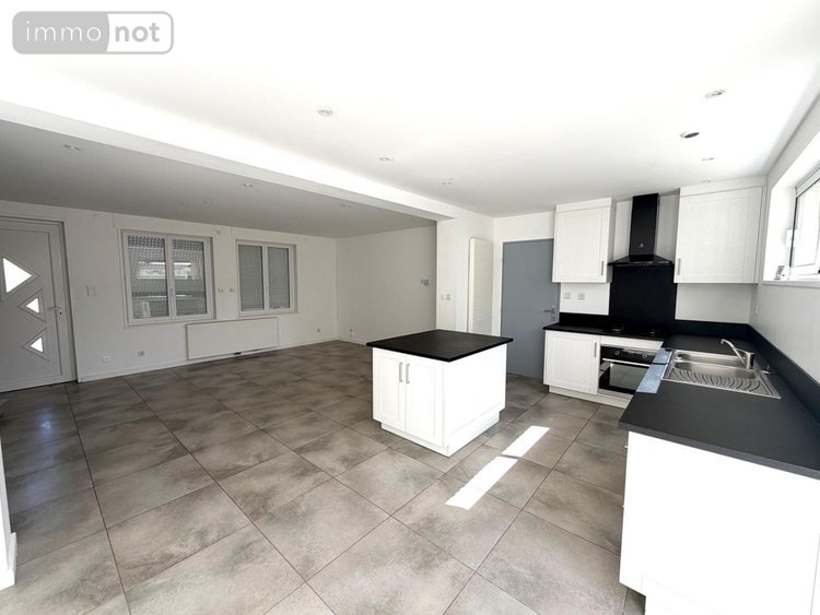 Rez de chaussée : salon séjour ouvert sur cuisine aménagée équipée, le tout sur 40 m2, buanderie 4,90 m2 et wc.