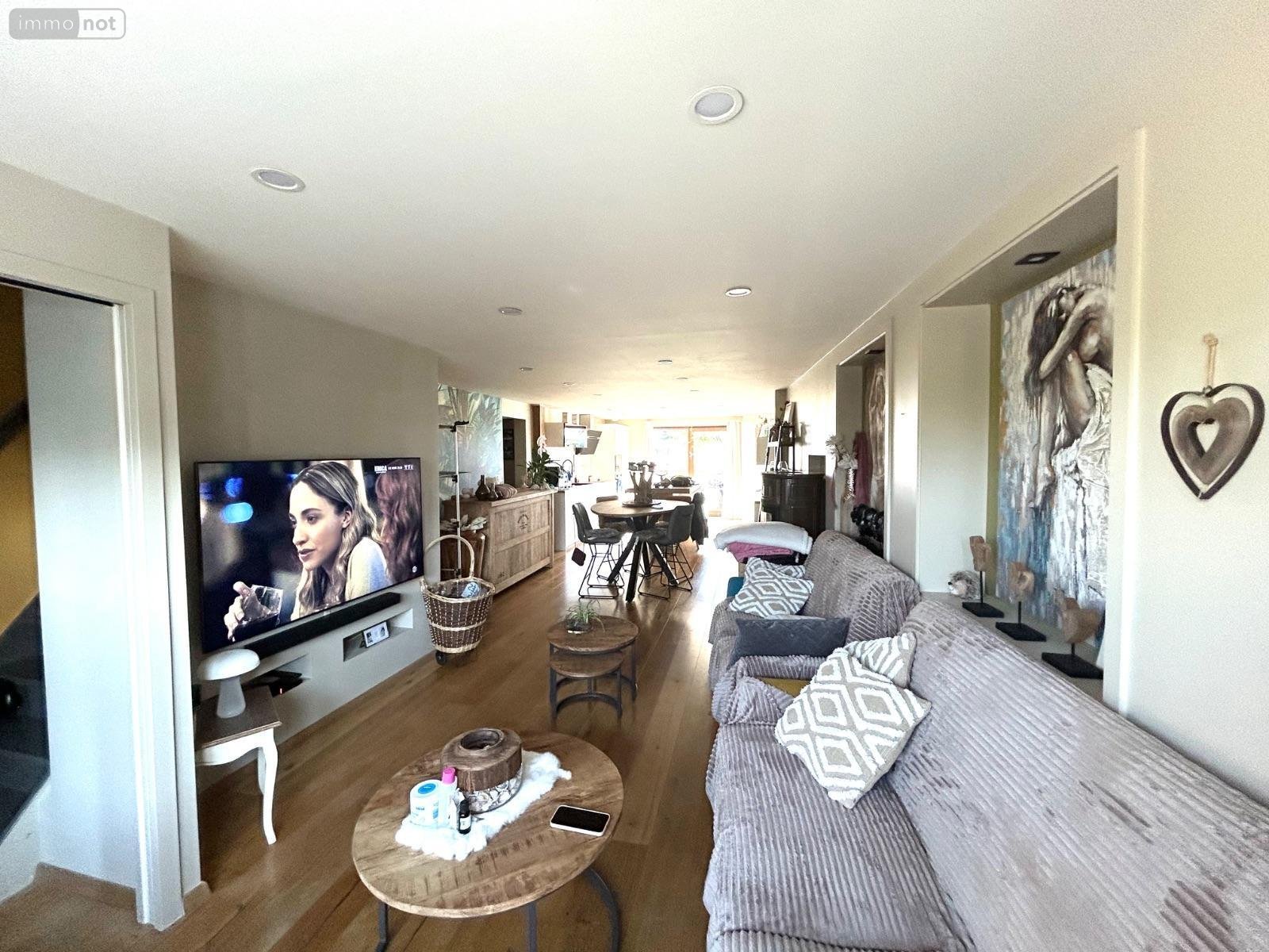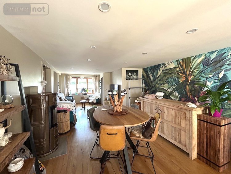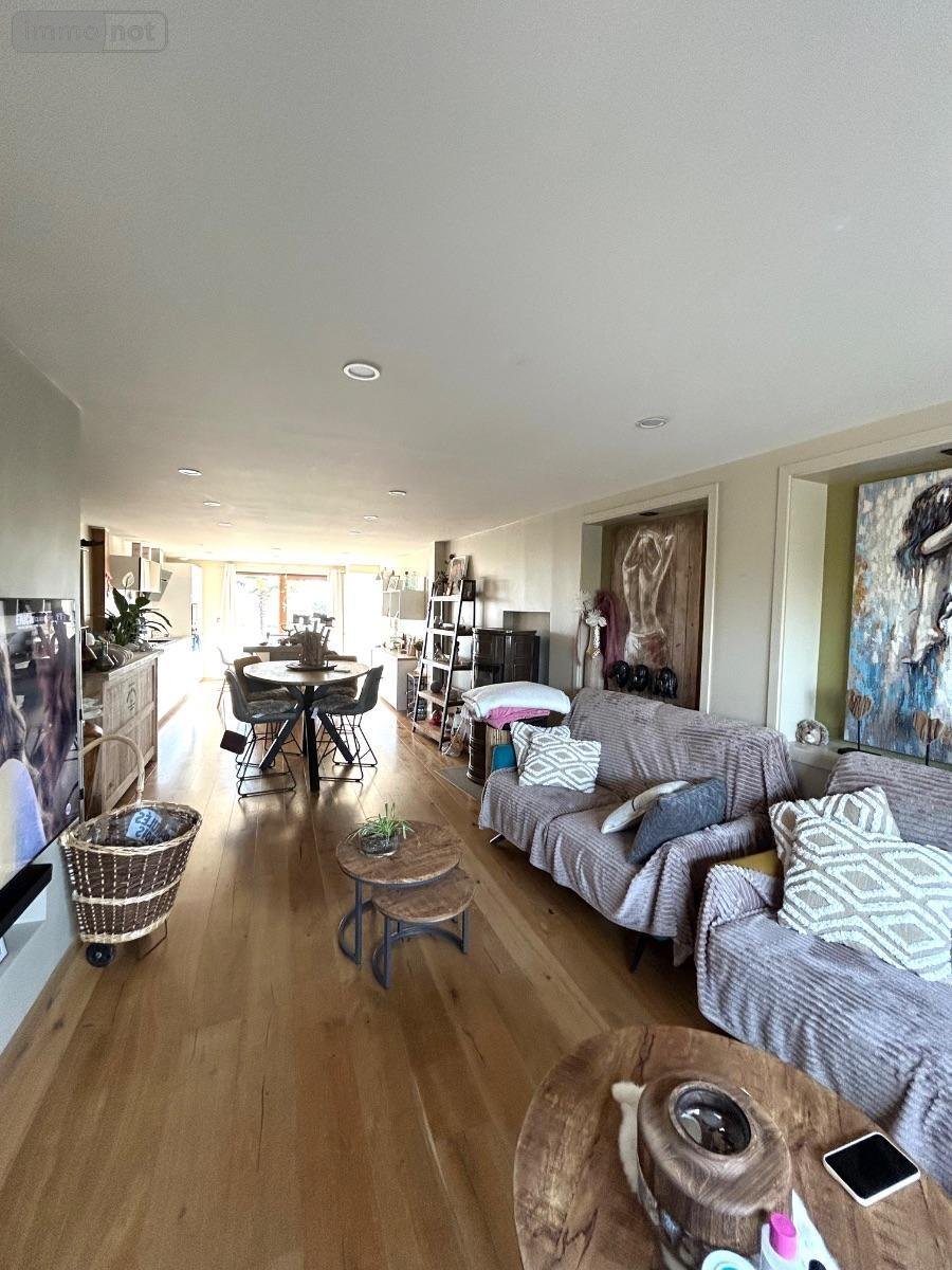 Rdc: salon séjour avec cuisine aménagée équipée ouverte récente (le tout sur 42 m2), chambre 15,60 m2, salle de douche 6,10 m2, cellier 3,30 m2, wc 2,30 m2 avec lave-mains.