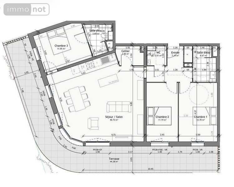 Dès l'entrée, vous découvrez un espace parfaitement optimisé menant à une pièce de vie spacieuse et baignée de lumière, avec cuisine ouverte à aménager selon vos envies. L'appartement comprend également trois chambres et une salle d'eau contemporaine. L'ensemble est livré entièrement terminé, vous laissant la liberté de personnaliser votre cuisine.