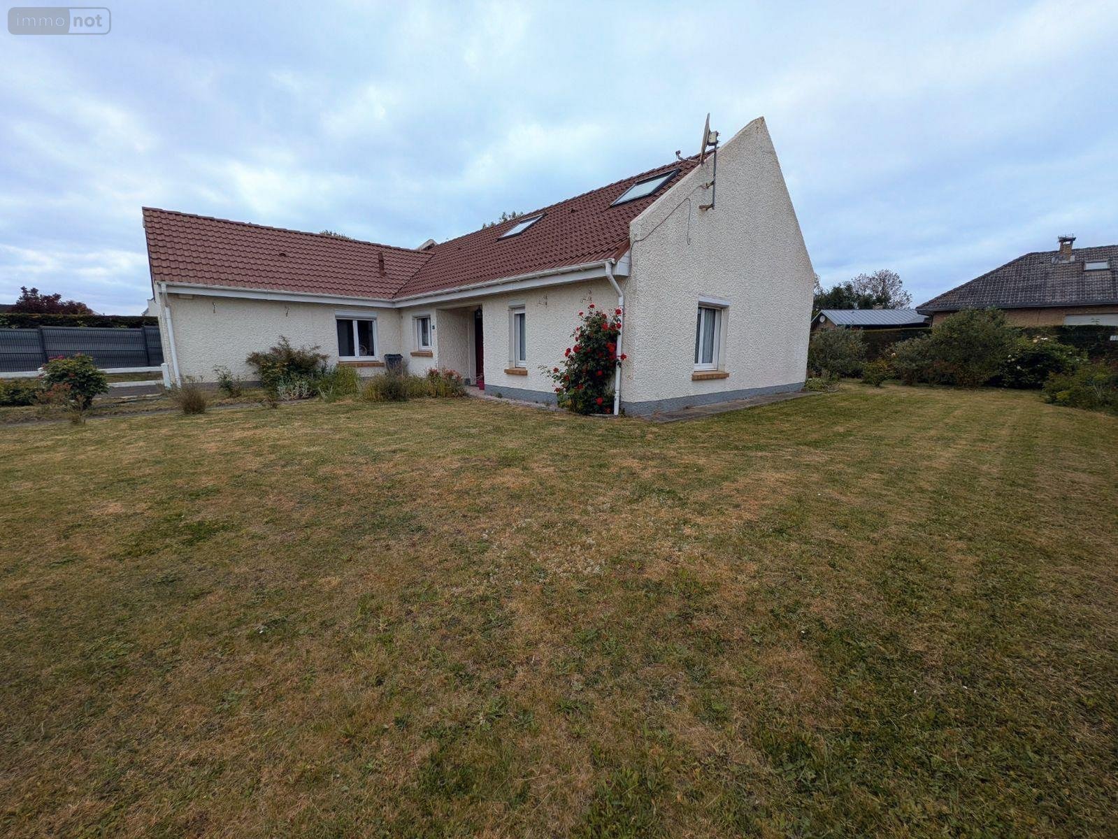 Proche accès A25 et Bergues. Dans quartier résidentiel calme, pavillon de semi plain pied en bon état composé d'un salon-séjour 29m², cuisine 12.7m², , salle de bains 4.5m², deux chambres 9.5/10.7m² avec placard, bureau 11.5m² avec rangement, à l'étage : une chambre 15m² et un grenier. Terrasse, garage 2 voitures, parking, jardin clôturé.