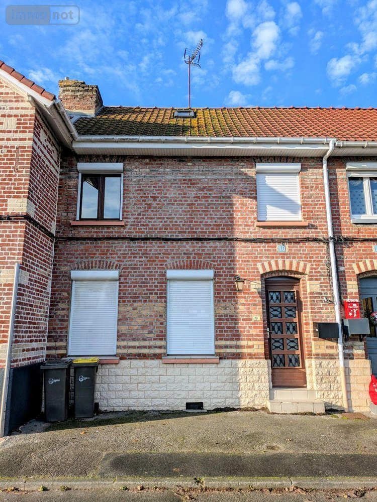 Maison mitoyenne à proximité de services et des commerces composée d'un salon-séjour, cuisine aménagée, à l'étage : salle de bains avec toilettes, deux chambres, pièce de rangement. Sous-sol avec atelier et cave. Jardin avec accès voiture.