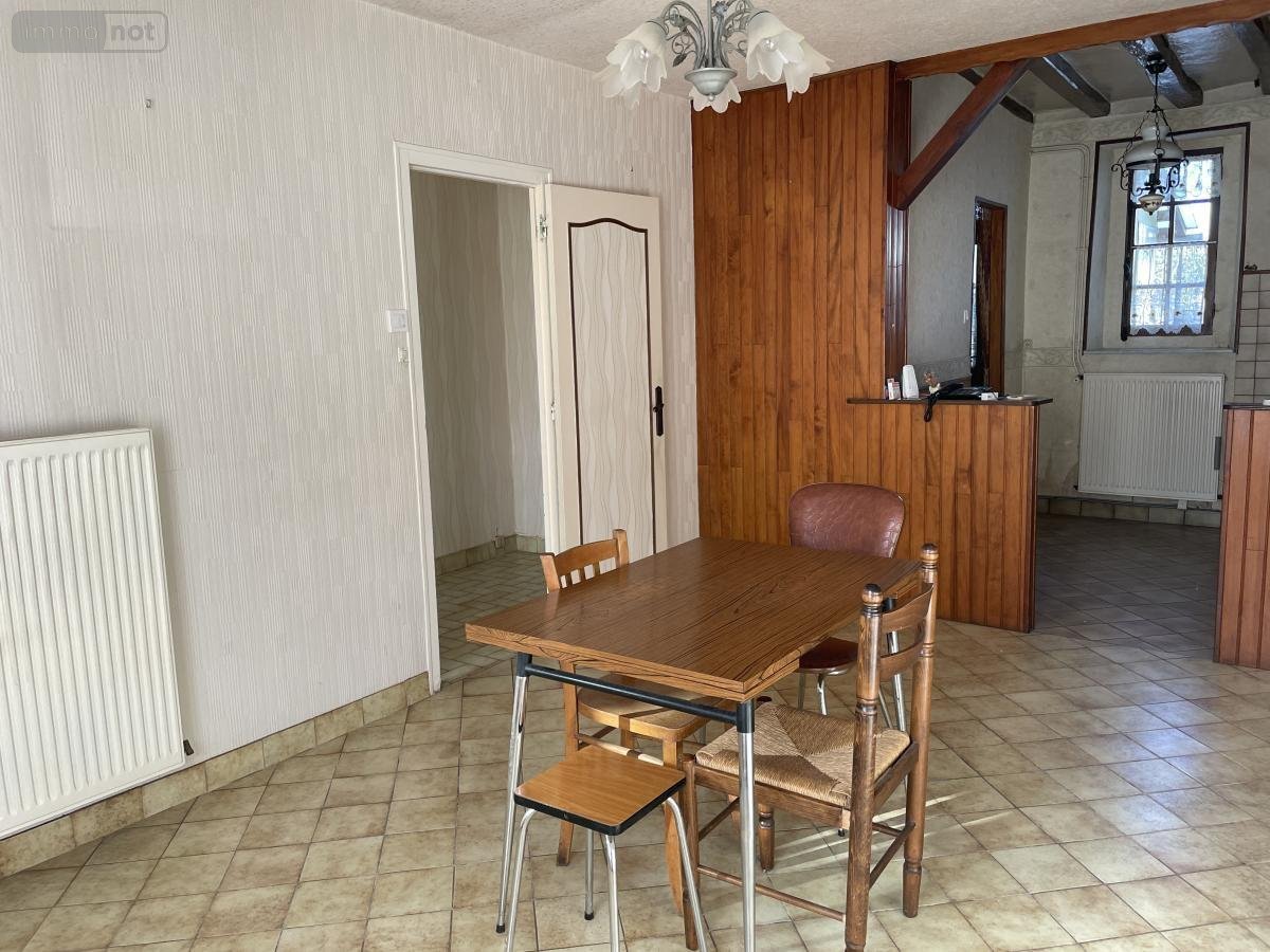 Maison de bourg comprenant une entrée desservant une grande pièce servant de chambre puis une pièce de vie avec une cuisine aménagée ouverte. En enfilade une arrière cuisine, donnant accès à l'extérieur par une petite véranda, puis accès à un dégagement comprenant la chaudière donnant accès aux WC et à la salle d'eau. Greniers à l'étage. Cours et jardin. Le tout sur 354m². Logement à consommation énergétique excessive.