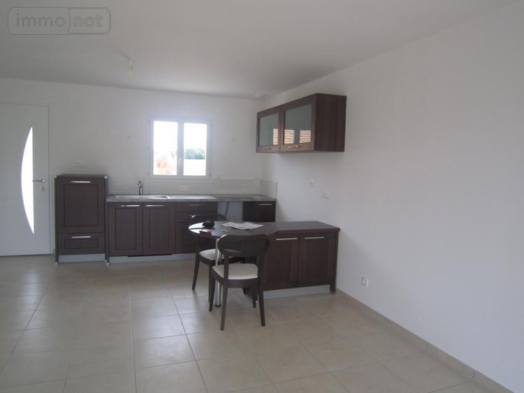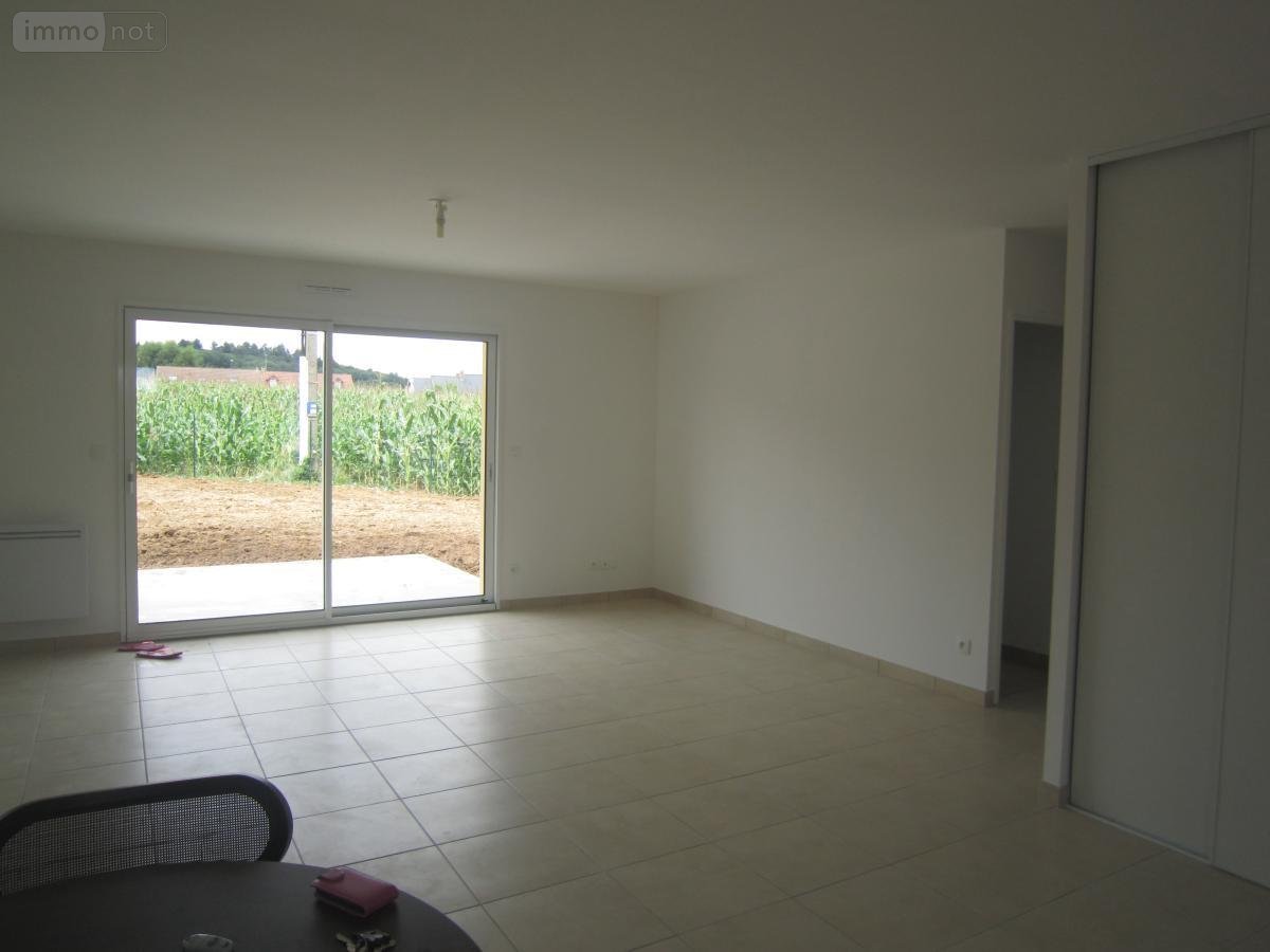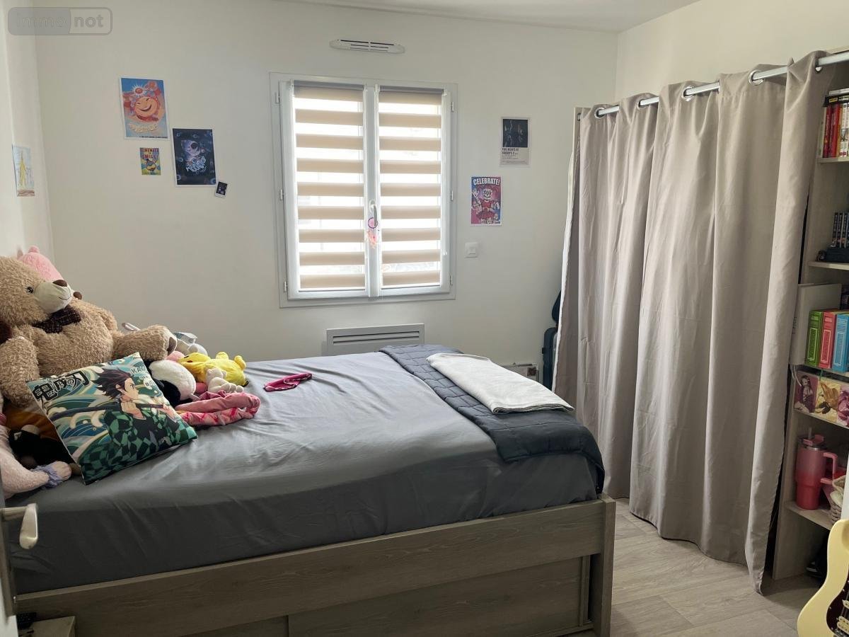 Entrée dans pièce de vie 37m² avec cuisine aménagée ouverte et accès terrasse, 3 chambres, salle de bains, WC, cellier, garage.